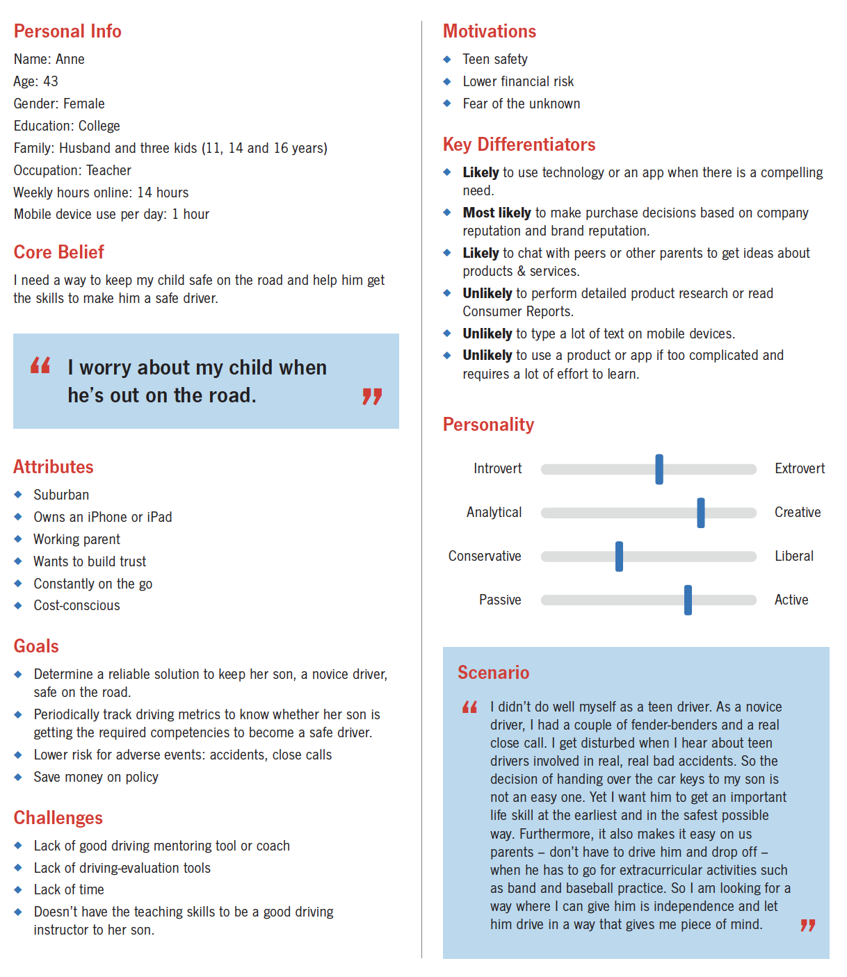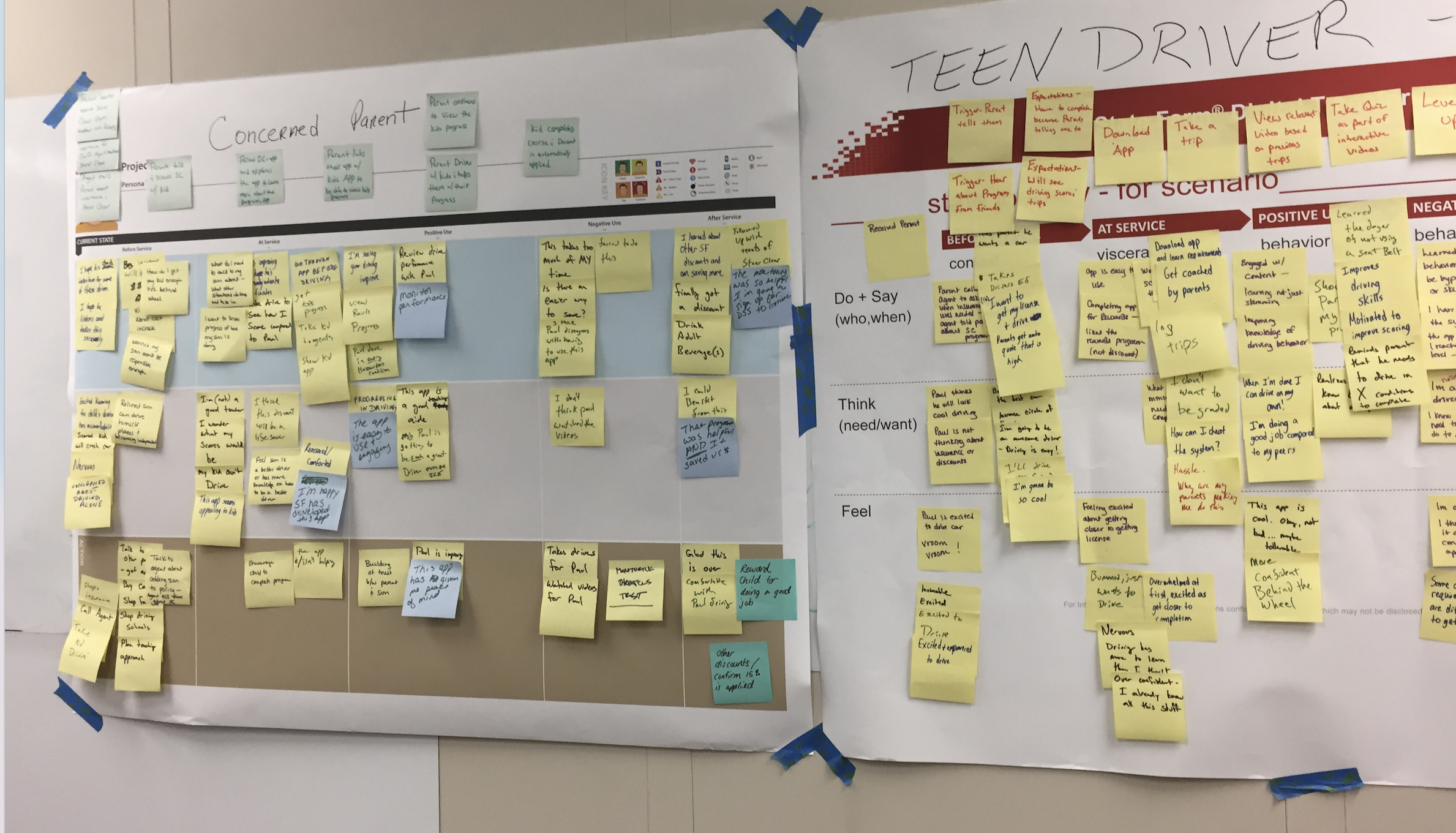I guided the team in understanding customer challenges and motivations. According to internal research, two primary groups used the app or were interested in monitoring driving habits and/or receiving policy discounts: Teens and concerned parents.