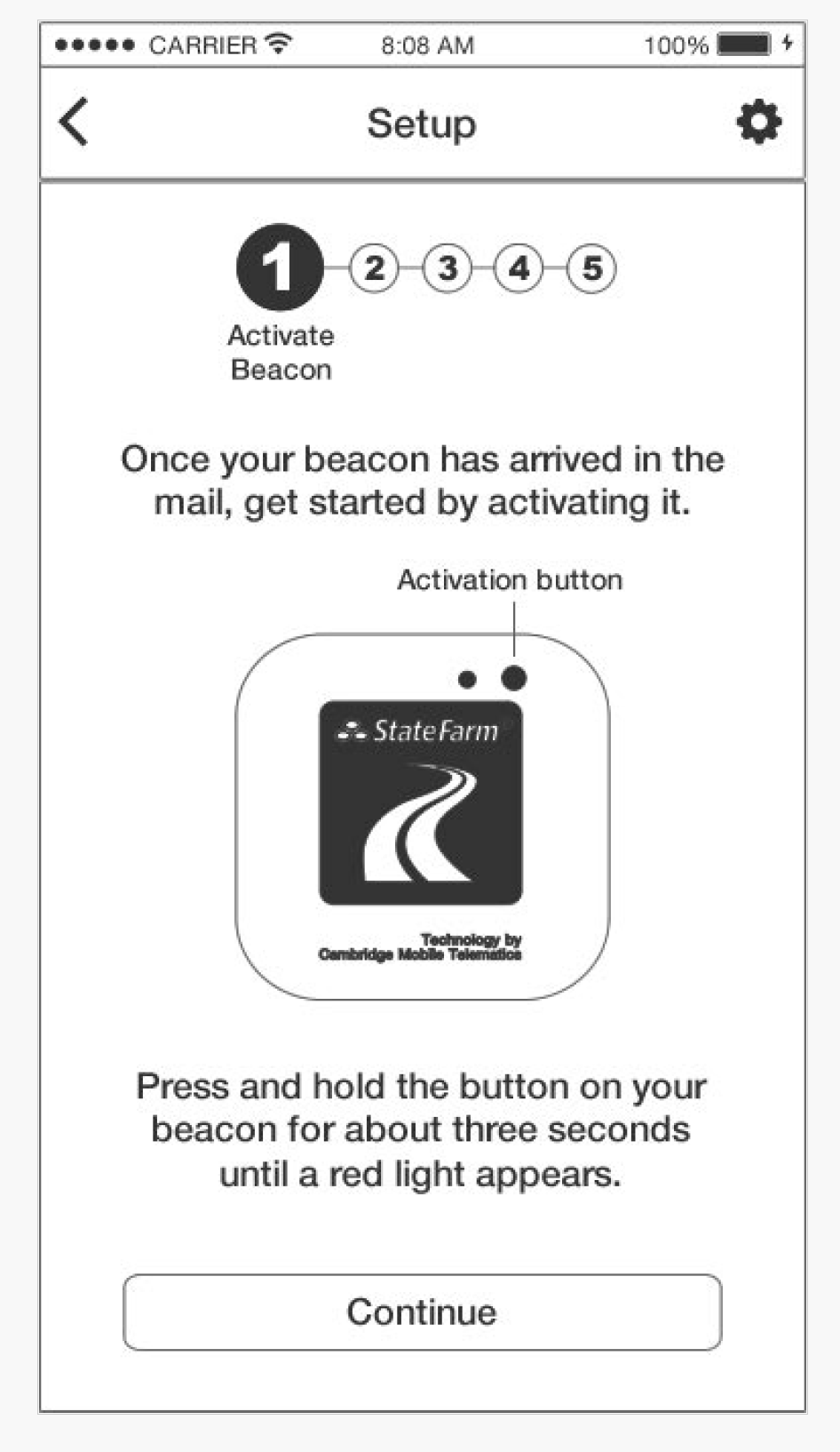 CHALLENGE: The number one pain point for customers was understanding the setup for the Drive Safe and Save application. Forty percent of support calls were beacon issues within the setup process. Customers said they did not understand the process, did not complete all the steps, or did not understand how to connect the app to the beacon device. This caused 48% of customers to abandon the setup.